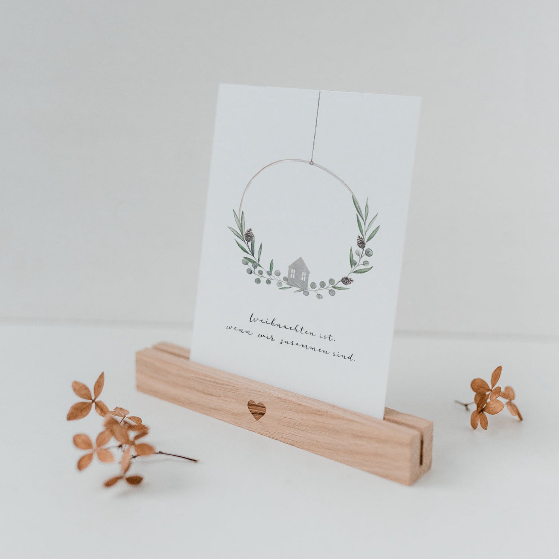 Mit dem liebevoll gestalteten Weihnachtskranz-Motiv und der Botschaft „Weihnachten ist, wenn wir zusammen sind“ bringt sie Wärme und Verbundenheit eindrucksvoll zum Ausdruck. Ob für Familie, Freund*innen oder besondere Herzensmenschen – diese Karte berührt und bleibt in Erinnerung.
